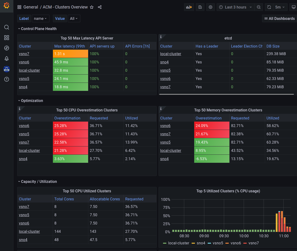 Also, you can use the Grafana observability dashboard (https://https://grafana-open-cluster-management-observability.apps.your-domain) to have a deeper view of what is happening.