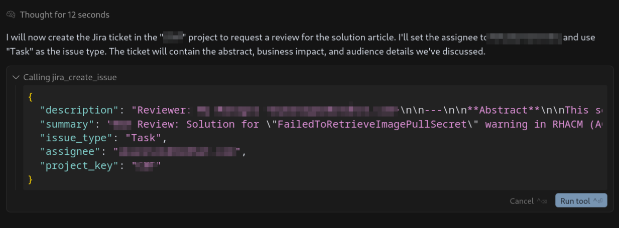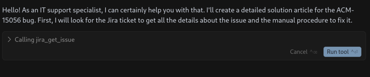 Writing an article with a solution, it does not require just me to review it. In general, you have another colleague that will give you a hand. And in addition, as it is our case, we could create a Jira Ticket to ask for a review under an internal process. I created a new prompt to create a new Jira ticket, that internally will trigger a review of article: