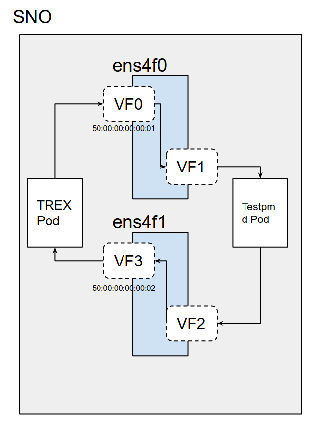 For this tutorial, we have been working with the Intel E810 card. Pretty new card, which would not be compatible yet with all the environments. Using SNO4.10 and TRex 3.0 seems to be working properly. But it is important to notice, here, we only did a packets simulation (testing). All the real capabilities would not be supported.
